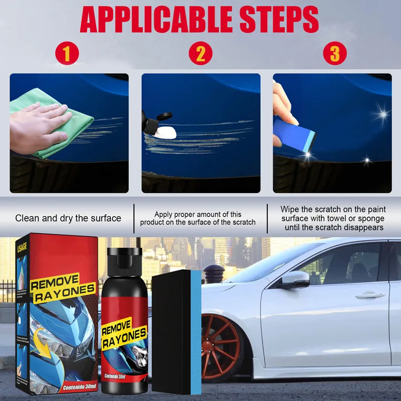 1. **Eliminación de arañazos:** La cera de mantenimiento es eficaz para eliminar arañazos superficiales en la pintura del automóvil, restaurando su apariencia y dejándola con un acabado más suave y uniforme.