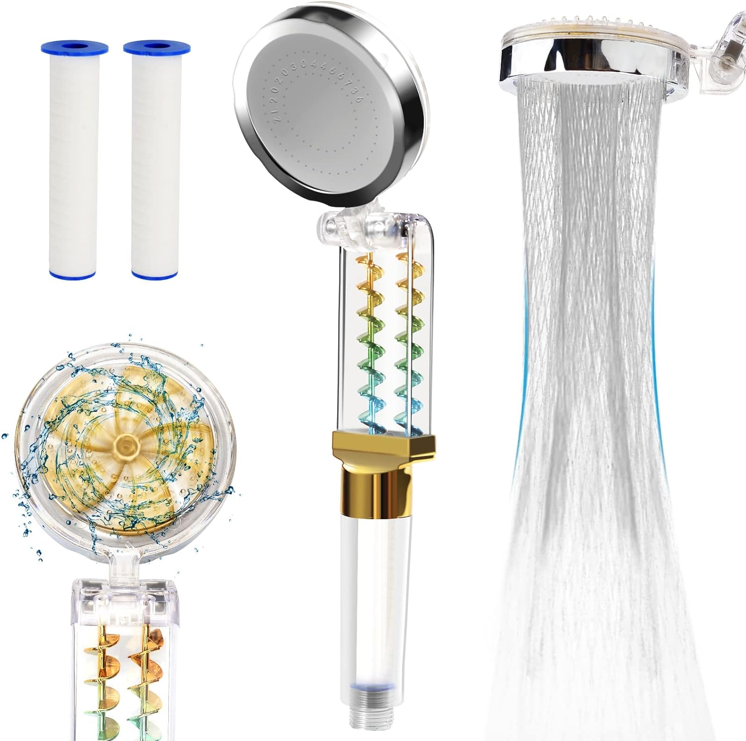 Experimente una ducha de alta presión con nuestro mango de ducha tornado giratorio. Con su diseño plegable y filtro de doble presurización, obtendrá un masaje relajante mientras ahorra agua. Contáctenos antes de reclamar una garantía, nos aseguraremos de que su experiencia sea impecable. ¡No más ajustes de temperatura!
