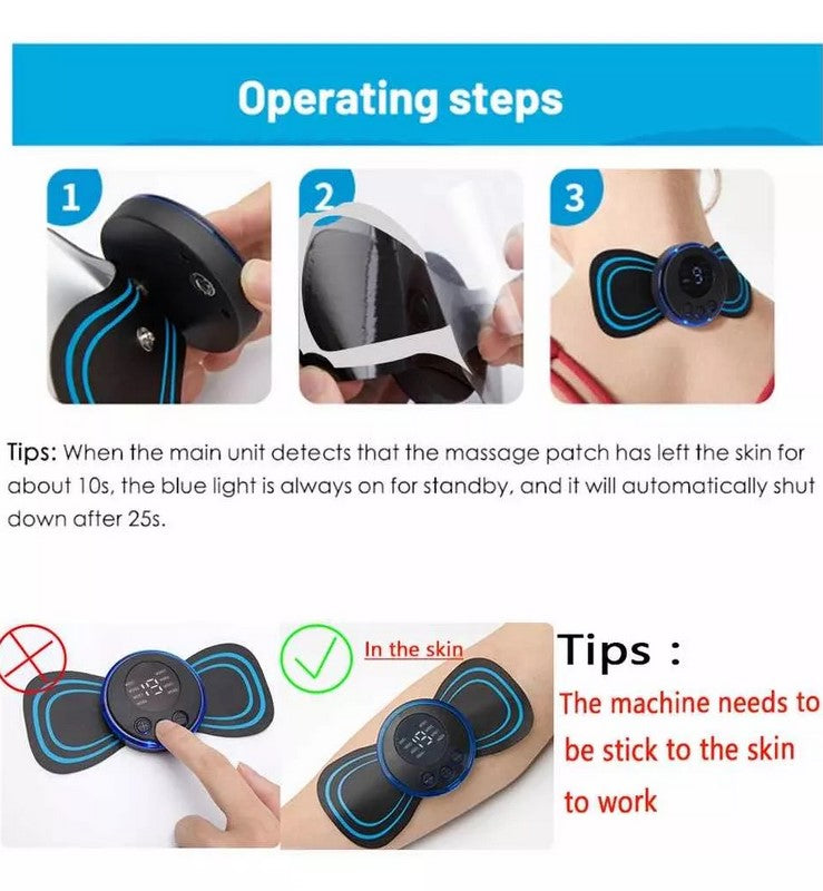 💪 FÁCIL DE USAR: Con instrucciones sencillas, este masajeador es práctico y conveniente. Solo necesitas girar el dispositivo con el parche de gel, retirar la película transparente del parche, colocar el dispositivo en el área deseada, encenderlo y seleccionar el modo de masaje deseado.