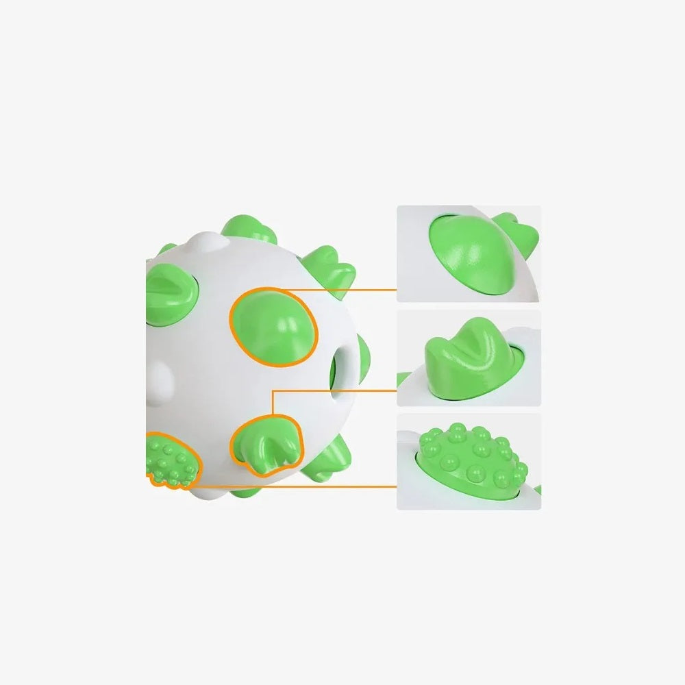 Pelota mordedora con 4 diferentes texturas para estimular la mandíbula, molares y encías de tu perro. Ayuda a mantener la correcta salud bucal de tu perro. Fabricado en plástico de alta resistencia y silicona de grado alimentario. 8 cm de diámetro.Ideal para razas medianas a grades. Disponible en verde y amarillo.