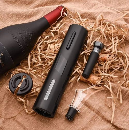 CARACTERÍSTICAS: @@- Increíble saca corchos fácil de usar simplemente colócalo en la parte superior de tu botella de vino, pulsa un botón y tada, tu vino está abierto y listo para servir. Ahorra tiempo y esfuerzo, puedes abrir electrónicamente un corcho en segundos con un solo clic. @- Diseño inalámbrico que hace que sea fácil de usar y manejar. @- Compacto y ligero. @- Fácil de limpiar @- Quita el corcho de la botella en solo 6 segundos. @- Ideal para los amantes del vino y póker. @- El abredor se adapta a la mayoría de tamaños estándar de botellas de vino. @- Sus medidas son 22,5 cm x 4,5 cm (Alto y Ancho). @- Usa 4 pilas AA (NO INCLUIDAS). @- Tamaño ideal y fácil de guardar. @- Su motor de 5w de potencia hace que sea muy silencioso. @- Incluye abredor de vino eléctrico/cortador de papel de aluminio para fiestas, Navidad, cena de cumpleaños, día de Acción de Gracias y más eventos de celebración. - Es un regalo increíble para cualquier amante del vino.
